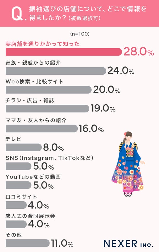 続いて、振袖選びの店舗について、どこで情報を得たのかを聞いてみました。