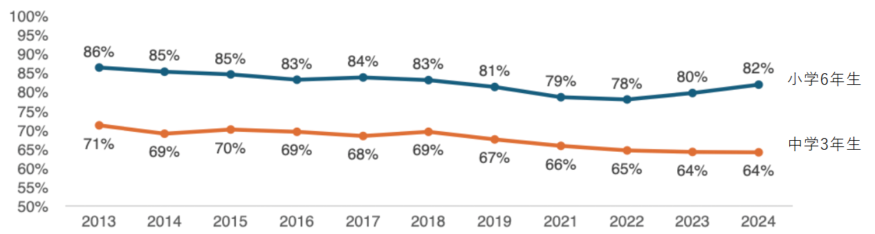 将来の夢や目標を持っている児童生徒の割合(全国学力学習状況調査 大阪府結果)