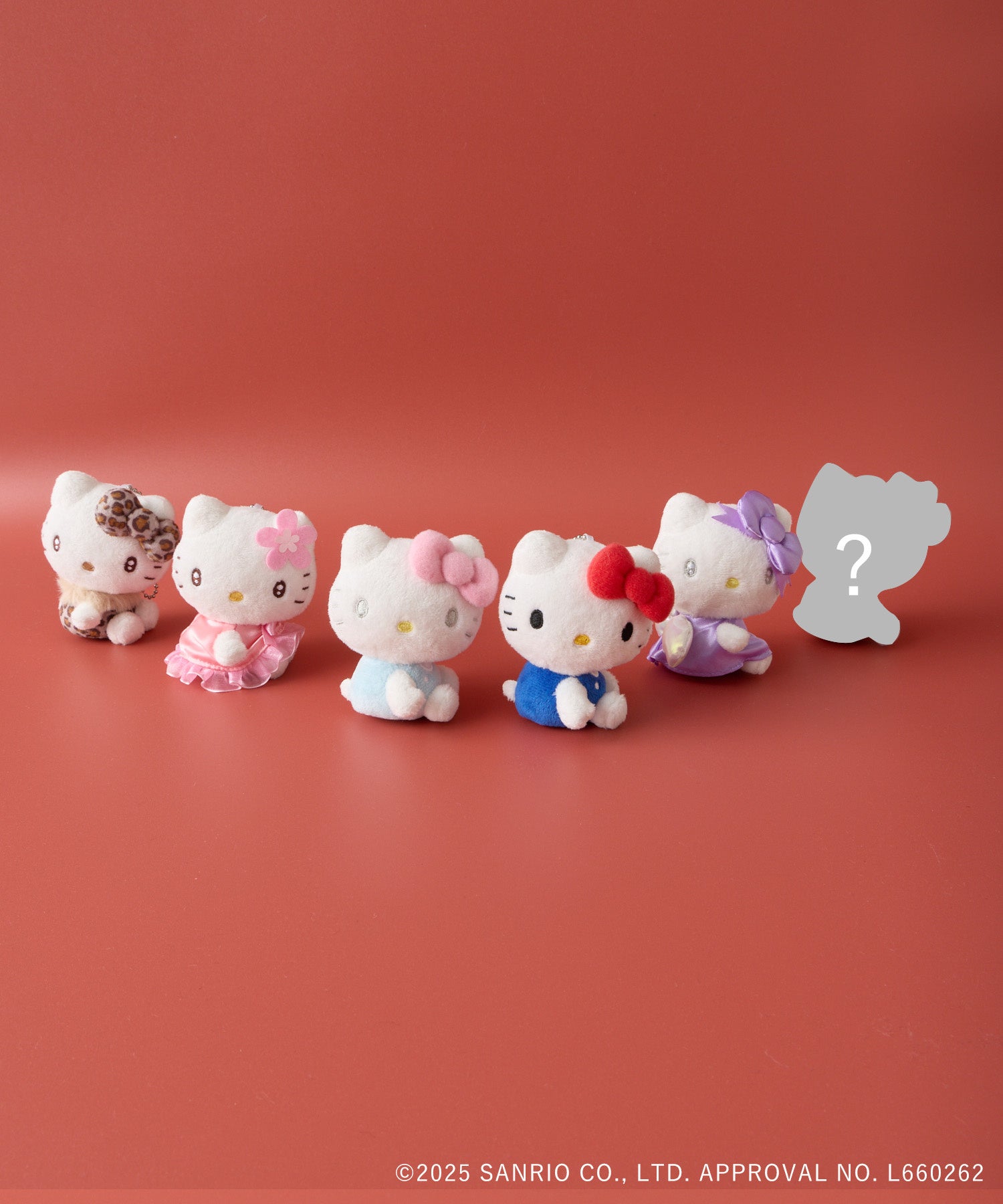 横向きにちょこんと座る愛らしいポージングの「ハローキティ」を採用し、それぞれ耳の飾りや目の表情まで違うデザインに仕上げました。どの柄が出るかは開けてからのお楽しみ!全6種類でシークレットが1種含まれています。どのデザインも可愛く、コレクションしたくなるサプライズ仕様。