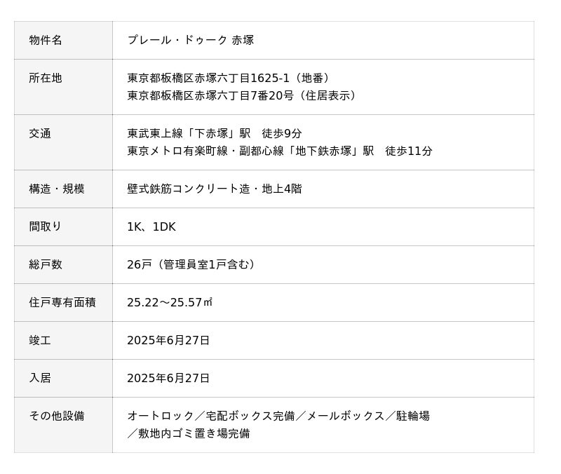 総合不動産事業を展開する株式会社 木下不動産(本社:東京都新宿区、代表取締役社長:坂本 建士)は、都市型収益用マンション「プレール・ドゥーク 赤塚」の販売を開始しました。
