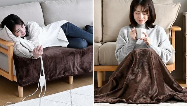 電気毛布というと寝る前にベッドやお布団で使うイメージが強いですが、こちらは日中も使いやすい敷いてもかけても使える2WAYタイプ!