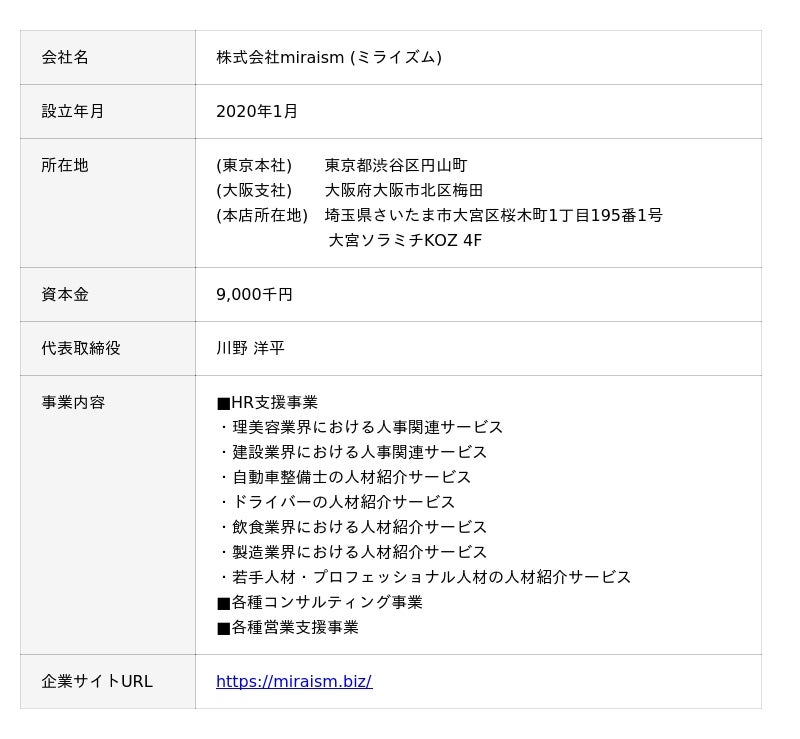 株式会社miraism 会社概要