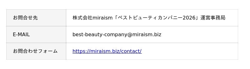 「ベストビューティカンパニー2026」に対するお問合せ先