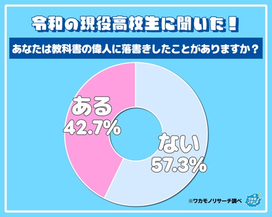 【教科書の偉人に「落書きしたことがある」と回答した高校生は全体の42.7%】