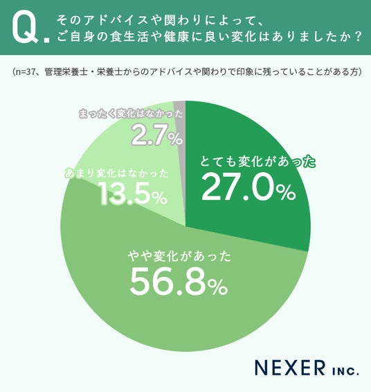 続いて、管理栄養士・栄養士との関わりで印象に残っていることがある人に対し、そのアドバイスや関わりによって食生活や健康に良い変化があったかを調査しました。