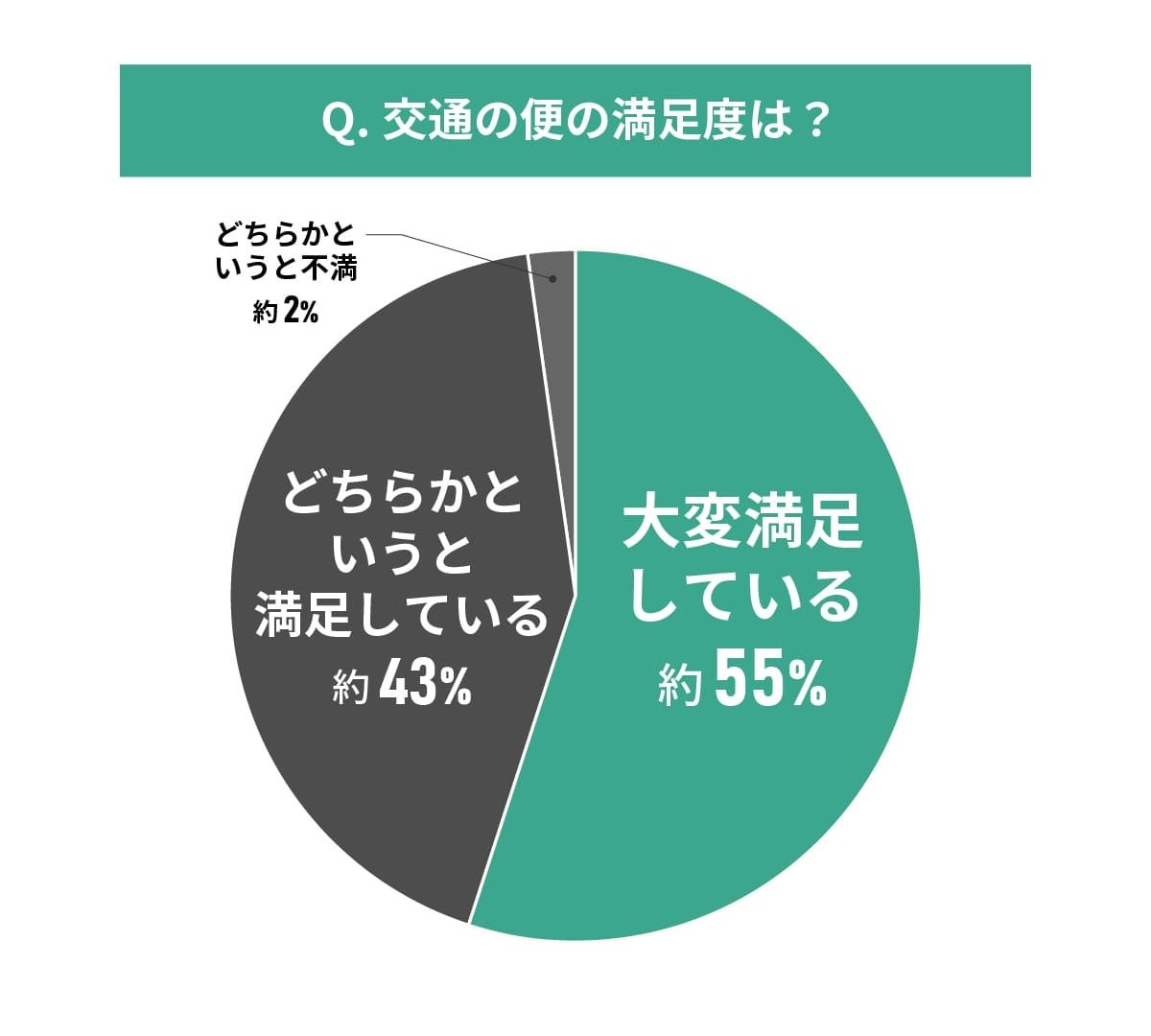 物価については約43%の住民が満足している一方で、約58%が不満を感じています。今回の調査で最も満足度が低い項目となりました。都心の利便性と引き換えに、生活コストの高さが課題となっています。