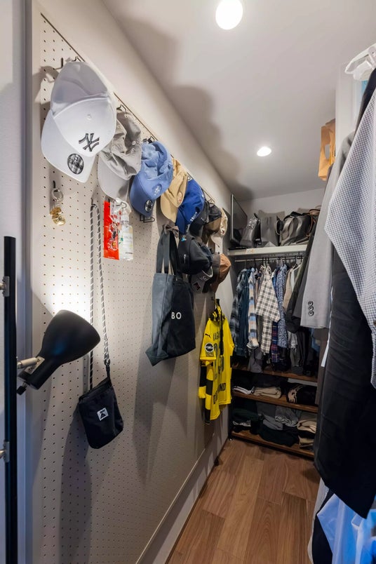 1階には壁を隔てて2か所にWICを設置。目的別に収納を分けられるのはもちろん、ランドリールームや玄関からも近いため、洗濯やお出かけ時の動線もスムーズです。