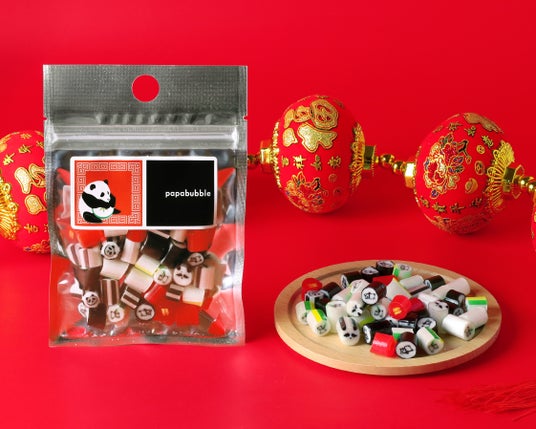 パンダらしい愛らしさに加え、中国でおめでたい場面に使われる「囍」の漢字を取り入れた絵柄もポイント。春節のお土産にもぴったりな、縁起の良さと遊び心をあわせ持ったキャンディミックスです。