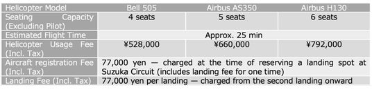 「鈴鹿サーキット送迎ヘリコプター」予約開始