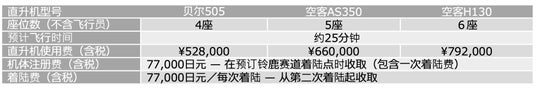 京都直升机场出发(单程费用):