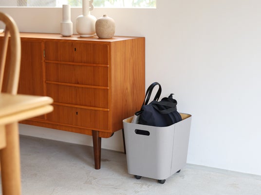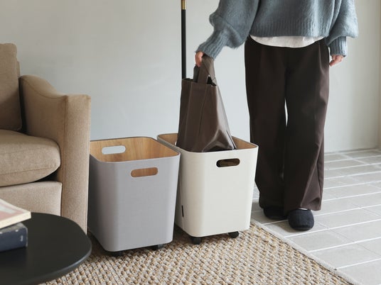 2025年に発売以来、完売と再販を繰り返す大人気アイテム「キャスター付き収納」シリーズ。キャスター付き収納が大ヒットした理由は、「好きな場所にらくらく動かせること」と「インテリアに馴染むデザイン」。ワイドタイプ・スリムタイプの2サイズ展開でどちらもまるでバケツのような大容量ながら、不思議とリビングに溶け込んでくれます。