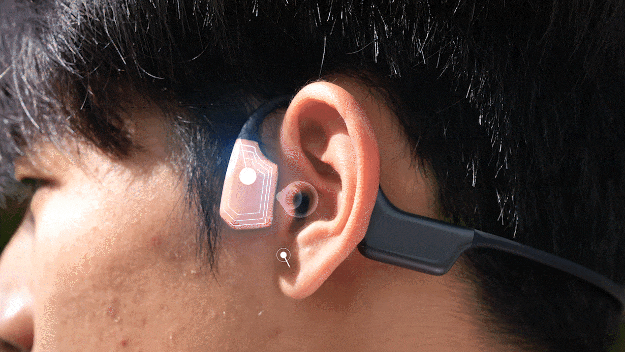 骨伝導スピーカーと空気伝導スピーカーを革命的に同時搭載、骨伝導の振動によるクリアな中高音域と、空気伝導の豊かな低音域を融合させ、まるでライブやコンサートの現場にいるような臨場感を演出。