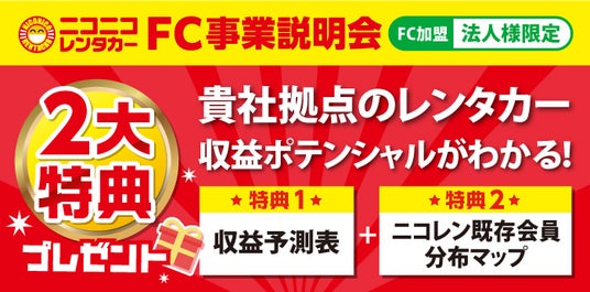 今ならFC事業説明会参加で2大特典をプレゼント!ぜひご参加ください!・自動車関連業で多事業展開をご検討中の方