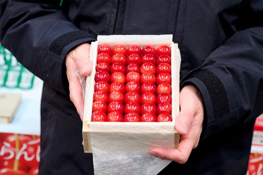 夏場に苗木を冷蔵庫で一定期間休眠させ、秋以降に温室ハウスへ移して栽培するという特別な工程を経ることで、年明けの初競りに間に合うよう育てられた、非常に希少性の高いさくらんぼです。