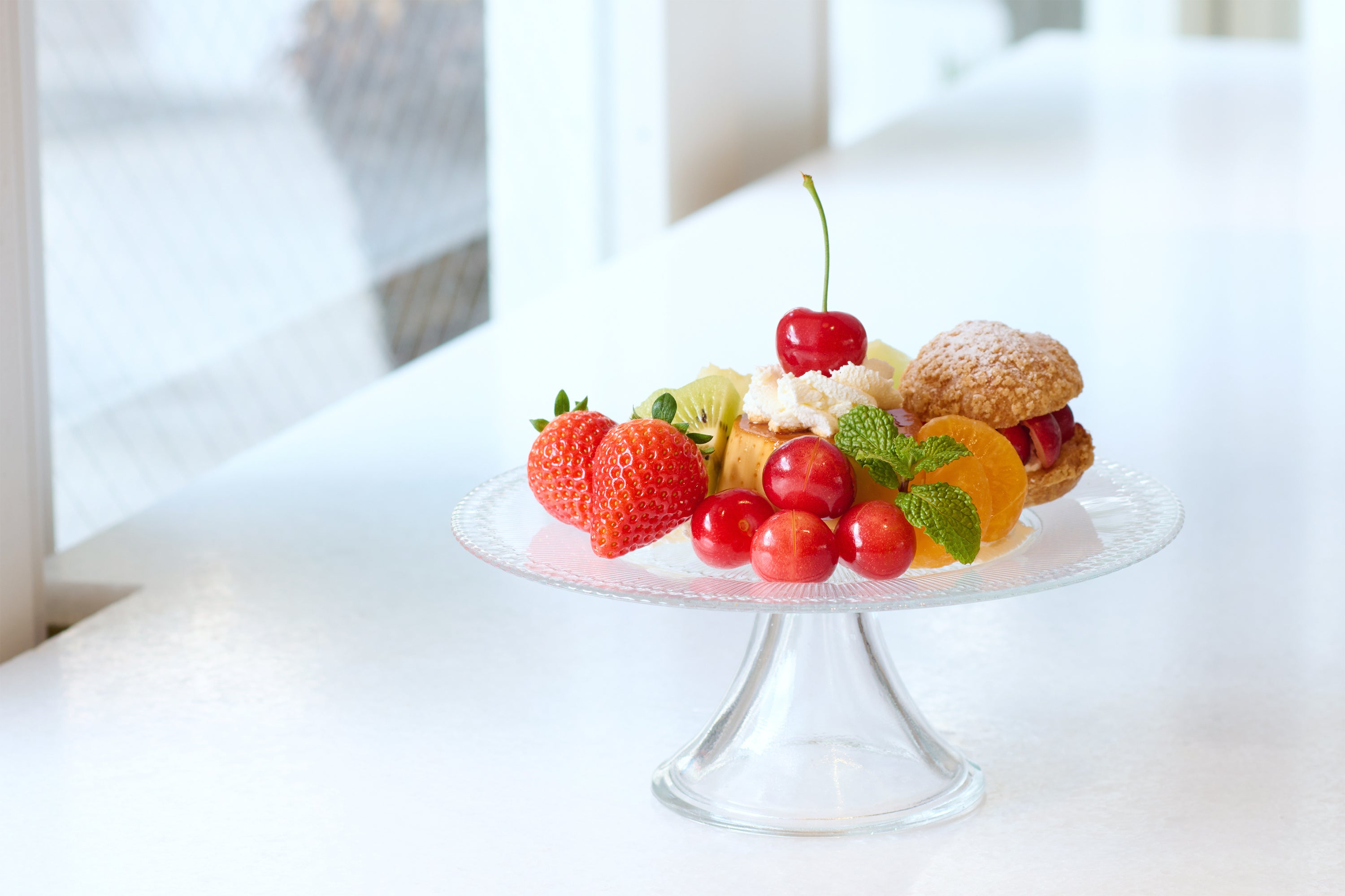 「佐藤錦」をメインに、旬のフルーツとDEK特製カスタードプリンを彩り豊かに盛り合わせた一皿。やや硬めに仕上げたクラシカルなプリンは、たまごのコクと風味が際立つ味わいです。甘くジューシーな「佐藤錦」と色鮮やかなフルーツを添え、どこか懐かしさを感じさせる、上品で愛らしいデザートに仕立てました。