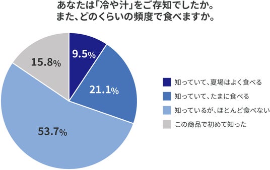 冷や汁を「知っているが、ほとんど食べない」が53.7%、「この商品で初めて知った」が15.8%と7割近い方が冷や汁にあまりなじみがないという現状が判明しました。