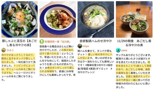 「様々な食材と合わせることができる」「好みの具材を追加できる」高い汎用性が高評価日本最大級の料理写真共有アプリ「Snapdish」(以下、スナップディッシュ)を運営するスナップディッシュ株式会社(所在地:東京都武蔵野市、代表取締役:舟田 善)協力のもと、同アプリのユーザーを対象に発売前の「あごだし香る 冷や汁の素」でテストモニターを実施しました。