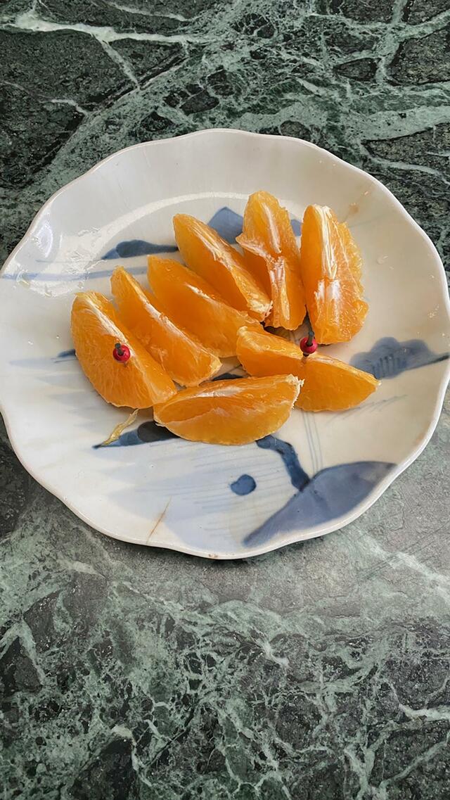 紅まどんな。ウフフ、並べたらおしまい。だんだんこんな手抜き食事が多くなるのだろうな。