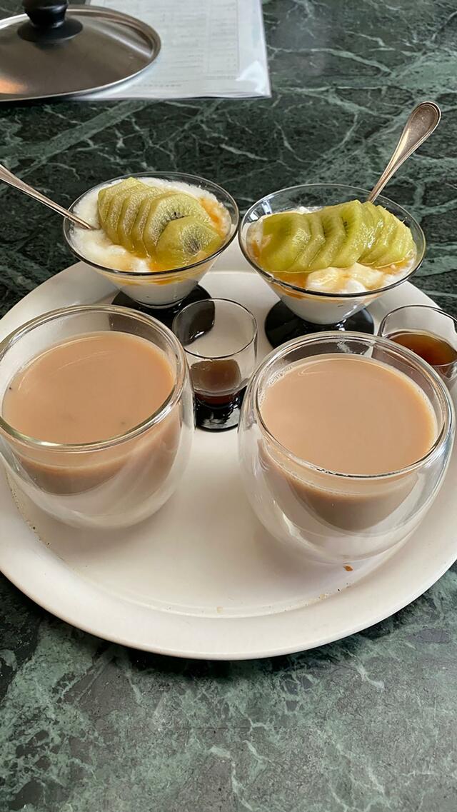 ヨーグルト+キウイ、ミルクティ、今日の元気、プロテイン。