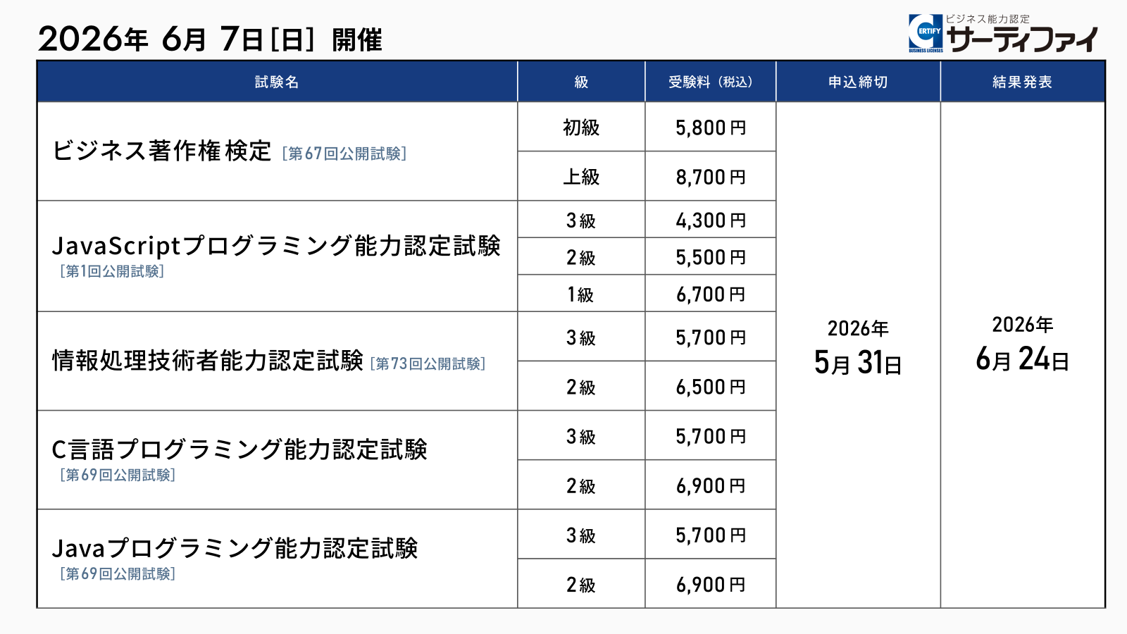 「ビジネス著作権検定」「C言語プログラミング能力認定試験」「Javaプログラミング能力認定試験」ほか5試験の公開試験申込受付を開始【試験日:2026年6月7日 】 -
