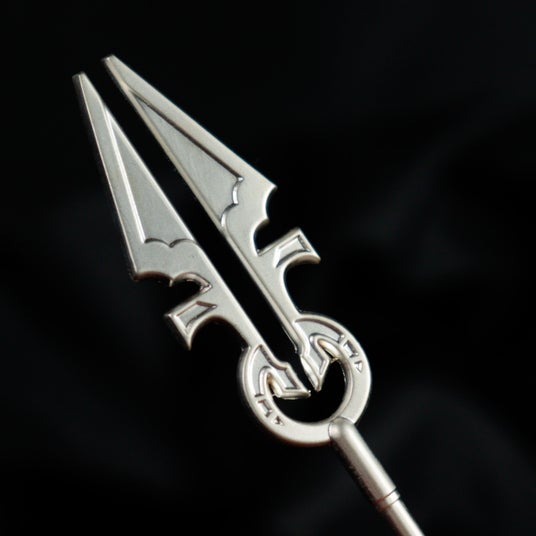 銀メッキで精巧に再現され、全長148mm。世界で1,993個のみの限定品で、槍には個別シリアルナンバー入り。ディスプレイスタンド付きの化粧箱に収められた、コレクター必携の逸品です。