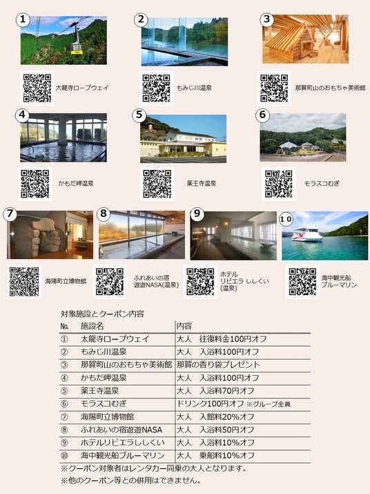 徳島県「みなみ阿波地域」への誘客及び観光消費額の拡大を図るため、レンタカー事業者や徳島県南の施設と連携した観光キャンペーンを行います。