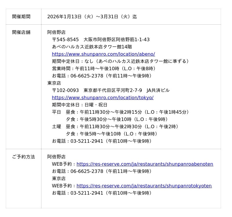 下関春帆楼阿倍野店(所在地:大阪市阿倍野区、店長:島津 研二、以下「阿倍野店」)および、下関春帆楼東京店(所在地:東京都千代田区、店長:岡野 哲也、以下「東京店」)は、2026年1月13日(火)より、期間限定の「白子祭り」を開催しますのでお知らせします。