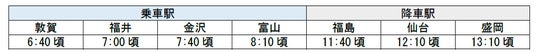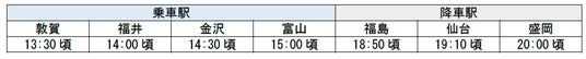 ※上記のほかに敦賀駅~黒部宇奈月温泉駅の各駅、郡山駅、一ノ関駅に停車します。