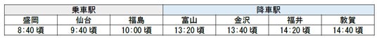 北陸から東北の直通新幹線は7年ぶり5回目で、北陸新幹線 敦賀~金沢間開業(2024年3月16日)以降初めて運転します。また東北から北陸への直通新幹線は1年ぶり6回目の運転です。