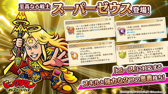 「[至高なる戦士]スーパーゼウス」はゲームだけのオリジナルキャラクターで、奥義を2つとエース編成に対応したスキルを持っており、「[爆神]ヤマト爆神」は、新たな効果を持っております。