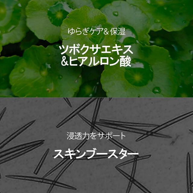 針の刺激で生じる肌のチクチク感をCICA成分が落ち着かせ、肌荒れを防ぎます。攻めと守りのケアを同時に行えるのが最大のメリットです。