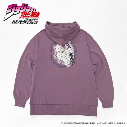 アニメ『ジョジョの奇妙な冒険 ダイヤモンドは砕けない』より「東方仗助」のスタンド「クレイジー・ダイヤモンド」をモチーフにしたプルパーカ。フロントはワンポイントの刺繍を施し、バックは「クレイジー・ダイヤモンド」をプリントしました。
