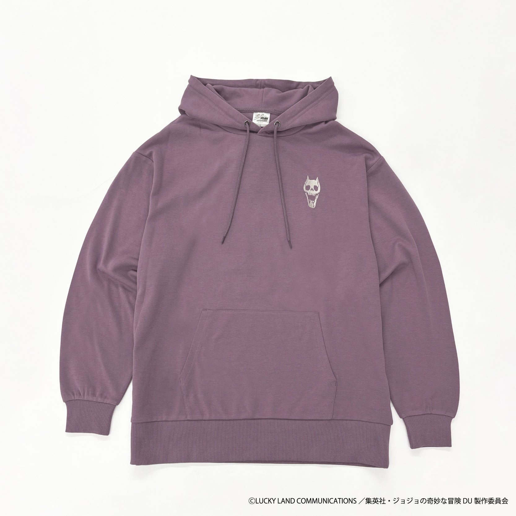 アニメ『ジョジョの奇妙な冒険 ダイヤモンドは砕けない』より「吉良吉影」のスタンド「キラークイーン」をモチーフにしたプルパーカ。フロントはワンポイントの刺繍を施し、バックは「キラークイーン」をプリントしました。
