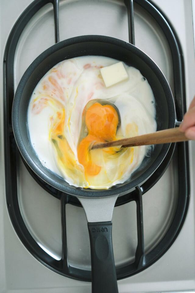 筆者の場合、その代表格がスクランブルエッグ。ホテルの朝食のようなとろとろ食感にしたいのに、フライパンの上ではあっという間にポロポロの“炒り卵”に……。
