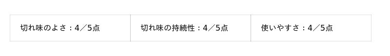 - 切れ味の持続性:5点満点