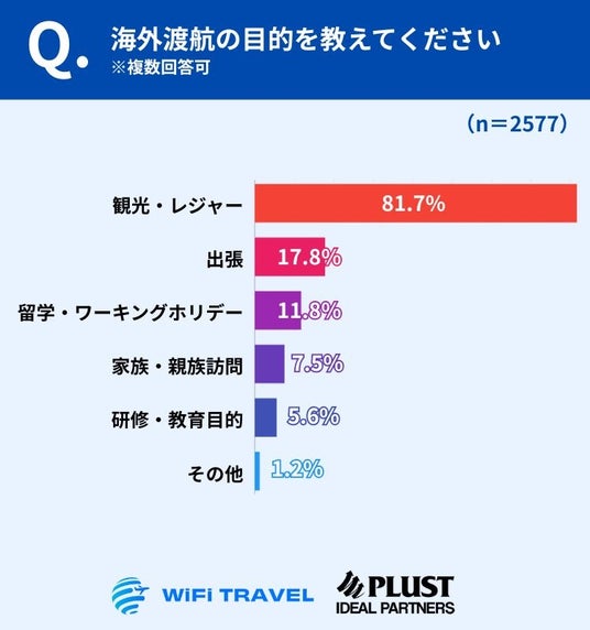 一方で、出張や留学・ワーキングホリデー、家族・親族訪問などの回答も一定数見られ、海外渡航は観光に限らず、仕事や学び、家族との関わりなど、ライフステージに応じて幅広く行われていることが明らかになりました。