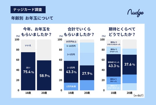 ナッジ株式会社(本社:東京都千代田区、代表取締役:沖田 貴史)は、次世代クレジットカード「Nudge(ナッジ、以下「ナッジカード」)ユーザーを対象に「お年玉に関する実態調査」を実施いたしました。