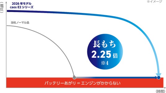 昨今、日本車への採用が進んでいるEN規格バッテリーを、「caos E2シリーズ」にリニューアルします。