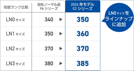 内部構造の最適化により、「LN1」サイズの性能ランクを向上しました。