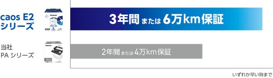 進化し続ける車両の電子制御に対応するため、「caos(カオス)E2シリーズ」では耐久性能を一段と高め、「3年間または6万 km(※3)」という業界最高水準の長期保証(※4)に対応する設計を実現しました。