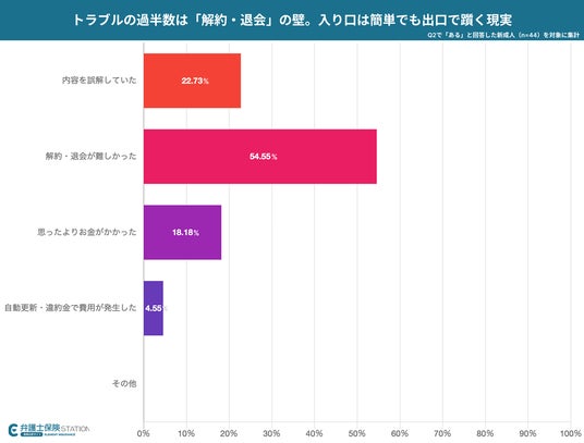 ・トラブル内容の最多は「解約・退会が難しかった」で約54.5%に達する