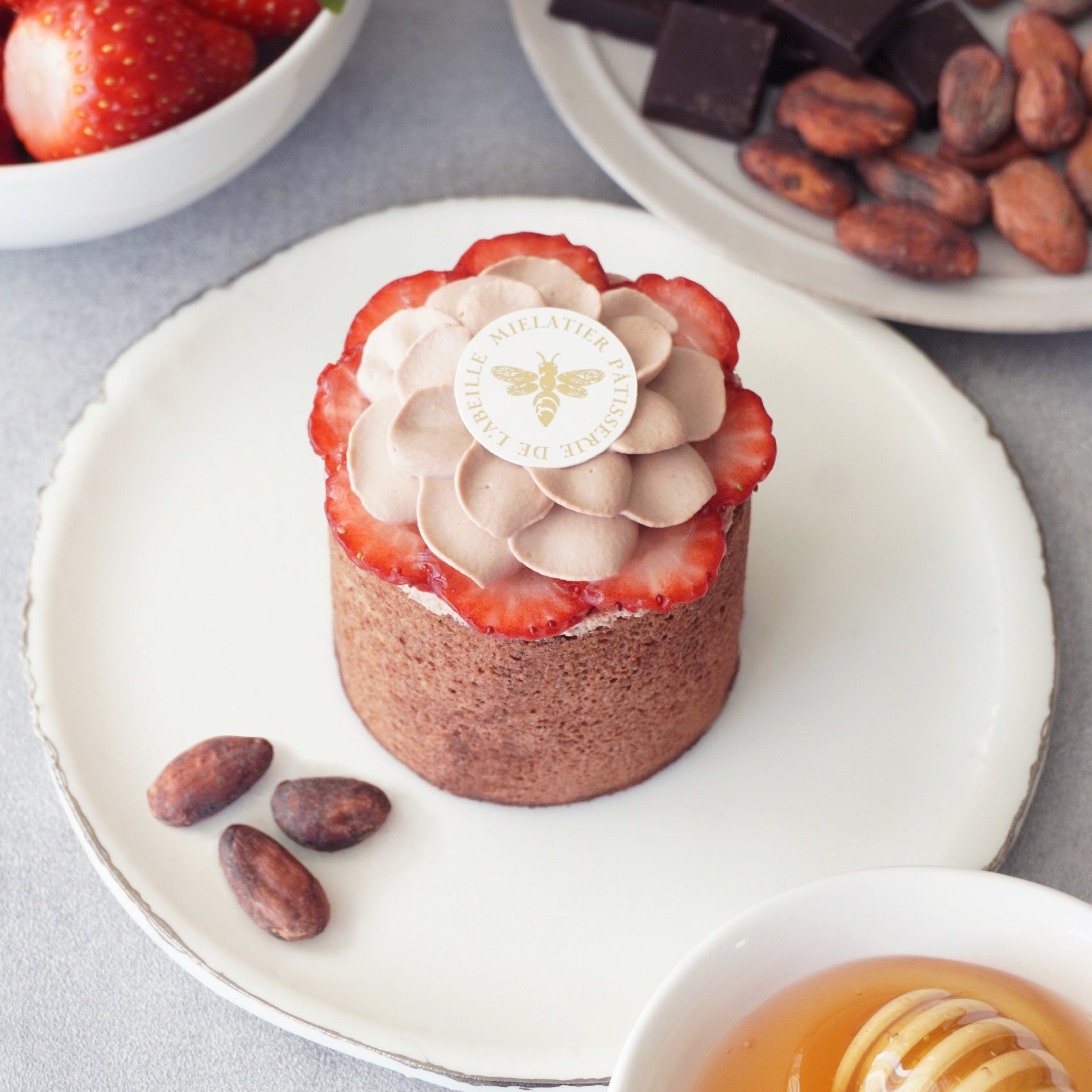 ■商品説明:いちごとホワイトクローバーはちみつ、ショコラの味わいが三位一体となった至福のマリアージュ。スポンジにたっぷりといちごとフランボワーズのはちみつシロップを吸わせ、ショコラ生クリームの濃厚な味わいといちごの酸味を引き立てました。