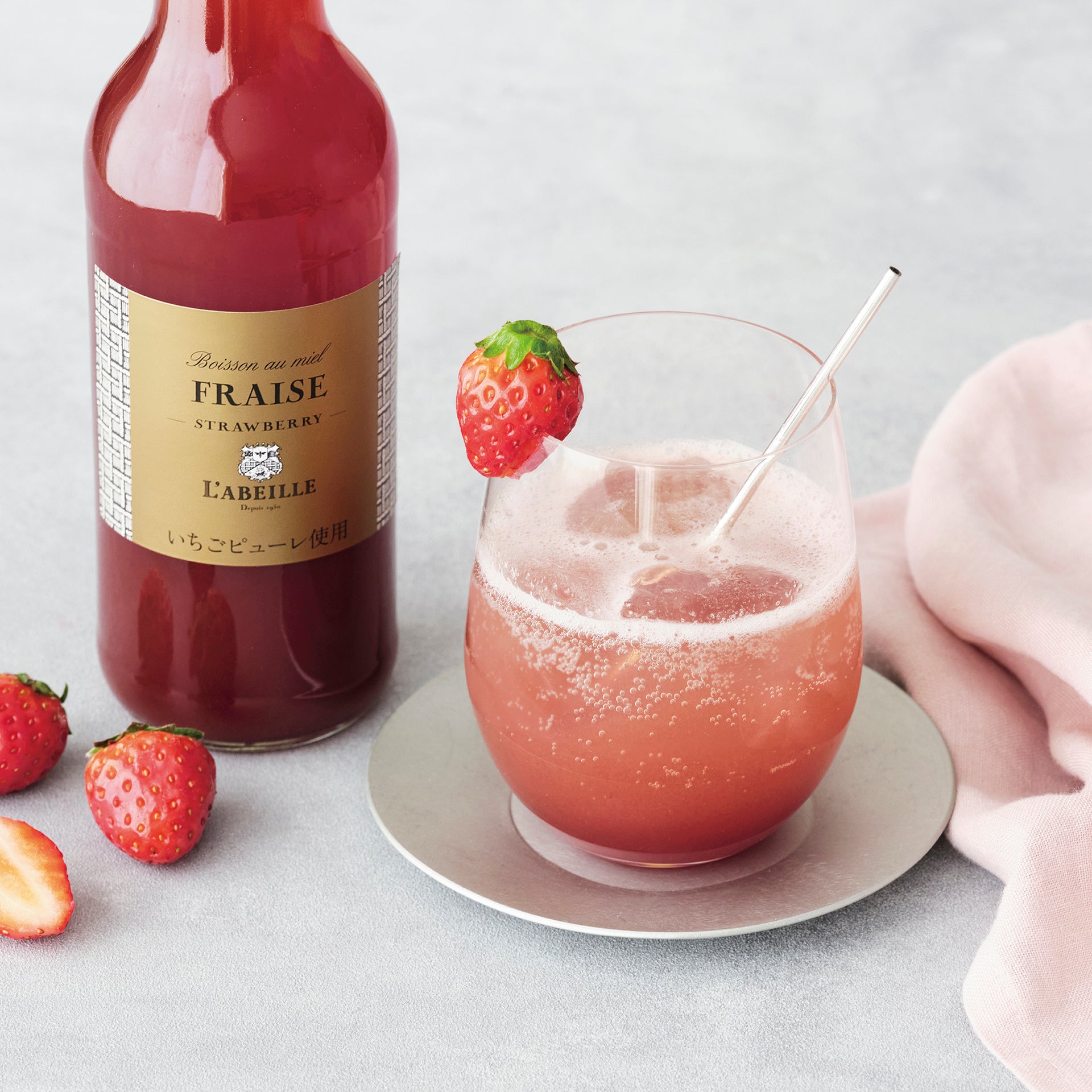 昨年人気で即完売してしまった「はちみつマリナード いちご」。今年はより飲みやすい形態となって「はちみつドリンク いちご」として新登場いたします。やさしく上品な味わいのアカシアはちみつといちごピューレで作ったドリンクは、いちごの甘酸っぱさとはちみつのまろやかな甘みが拡がります。いちごピューレを贅沢に使用し、いちごの自然な風味、華やかな香り、さわやかな酸味が魅力。炭酸水や牛乳で3~4 倍に割ると、ご自宅で簡単に“はちみついちごソーダ”や“はちみついちごミルク”が楽しめます。自分へのご褒美や手土産にもおすすめです。ミエラティエからいちごスイーツ2 種登場