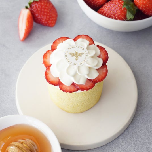はちみつブランド ラベイユから誕生した世界初のはちみつパティスリー ミエラティエでは、砂糖を一切使用せずラベイユハニーを贅沢に使ってスイーツを作っています。ミルキーな味わいのホワイトクローバーはちみつがいちごの香りや味わいを引き立てる贅沢なはちみつショートケーキ「シャンティ ミエル ショコラ」、「シャンティ ミエルフレーズ」を2026 年1 月15 日(木)から順次発売いたします。
