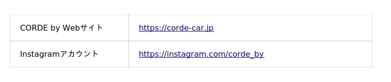 車両詳細や今後のイベント出展については、下記公式サイトおよびCORDE by公式SNSでも公開しています。