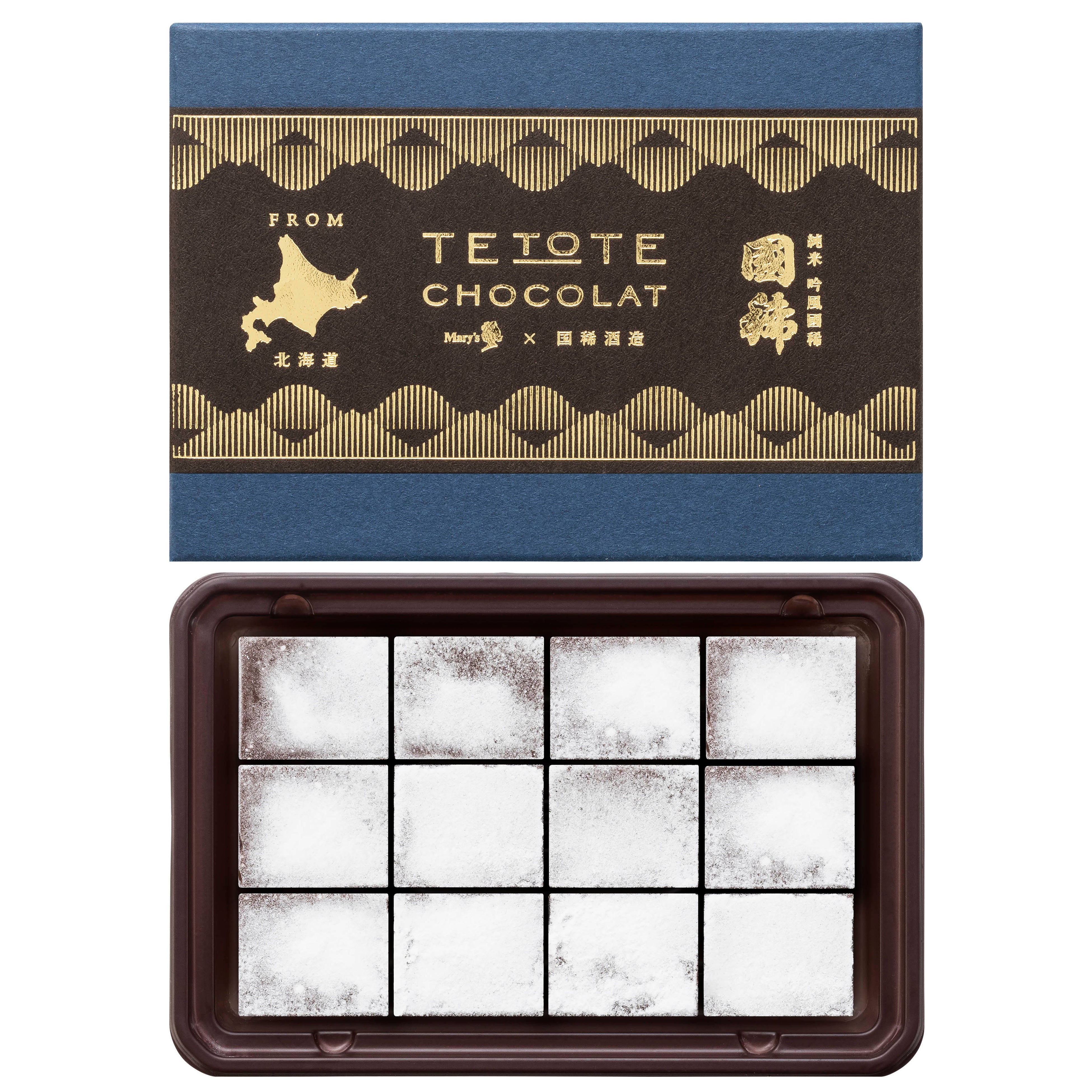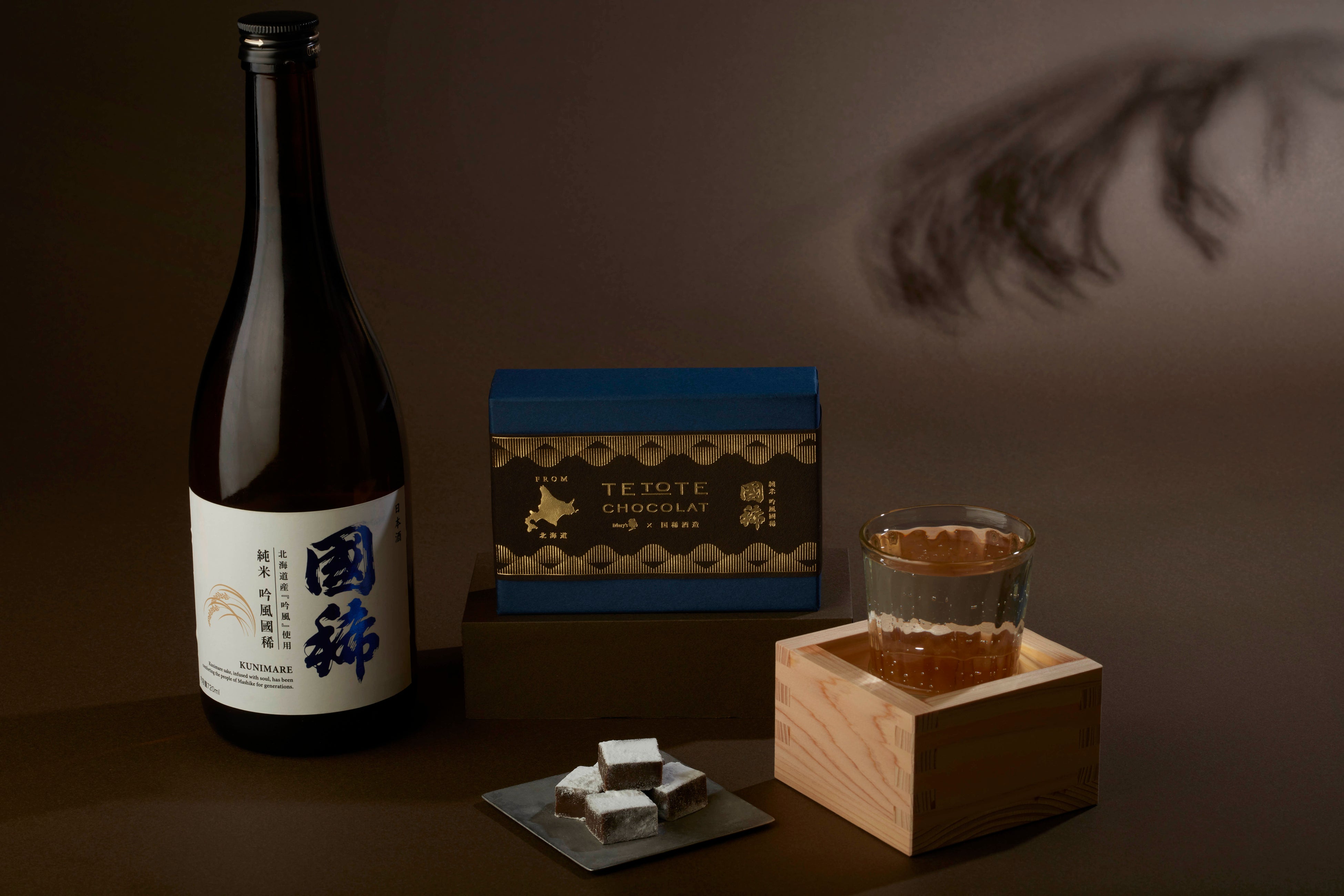 まろやかなミルクチョコレートと奥深いビターチョコレートを、北海道の酒米「吟風」のふくよかな味わいとキレの良い後味が引き立つようバランスよく合わせました。