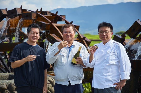 篠崎代表(左)・田籠杜氏(中央)・大石ショコラティエ(右)