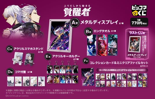 プレイヤーがゲーム世界に入り込むという「ふりだしから始まる覚醒者」ならではの世界観と、デジタルでスタイリッシュな雰囲気を落とし込んだアイテムを展開。物語の象徴である「覚醒」の瞬間は、A賞にメタル素材を採用し、重厚感と高級感のある質感で表現しました。実用性の高いアイテムからカードセットまで、凌の進撃と作品が放つ熱量を身近に感じられる構成となっています。- 作品名:ふりだしから始まる覚醒者
