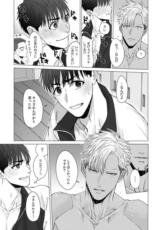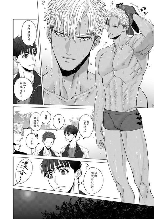 大学の水泳部で部長を務めていた良太(りょうた)。引退後のある日、久しぶりに部に顔を出し、部室で休憩していたところ、ひょんなことから後輩でエースの凪(なぎ)に、突然キスされてしまう…!? 動揺が収まらない中、さらに現部長の山田からは「凪のサポートをしてほしい」と頼まれる。