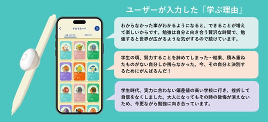 「大人のやる気ペン」の利用データを分析した結果、「なぜ学ぶのか」という学習の理由を明確に記述したユーザーは、そうでないユーザーと比較して、連続学習日数が長くなる傾向が見られました。この傾向は、ベネッセが長年の教育支援を通じて把握してきた、子どもにおける「いつまでにドリルを終わらせる」「次のテストで◯点以上を目指す」といった目標設定の重要性が、大人の学びにも有効であることを示唆する結果といえます。